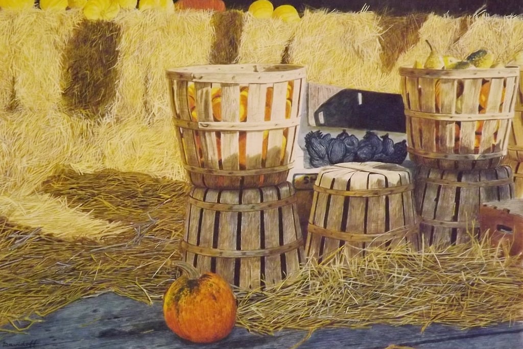 BASKETS STRAW & PUMPKINS 16 X 20