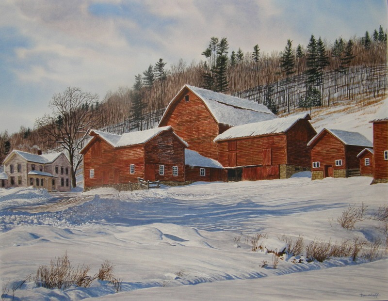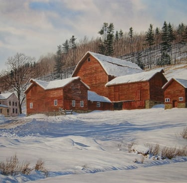 HILLSIDE FARMSTEAD IN SNOW 22 X 26