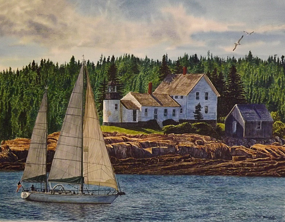 SAILING BY WINTER HARBOR LIGHT 22 X 26