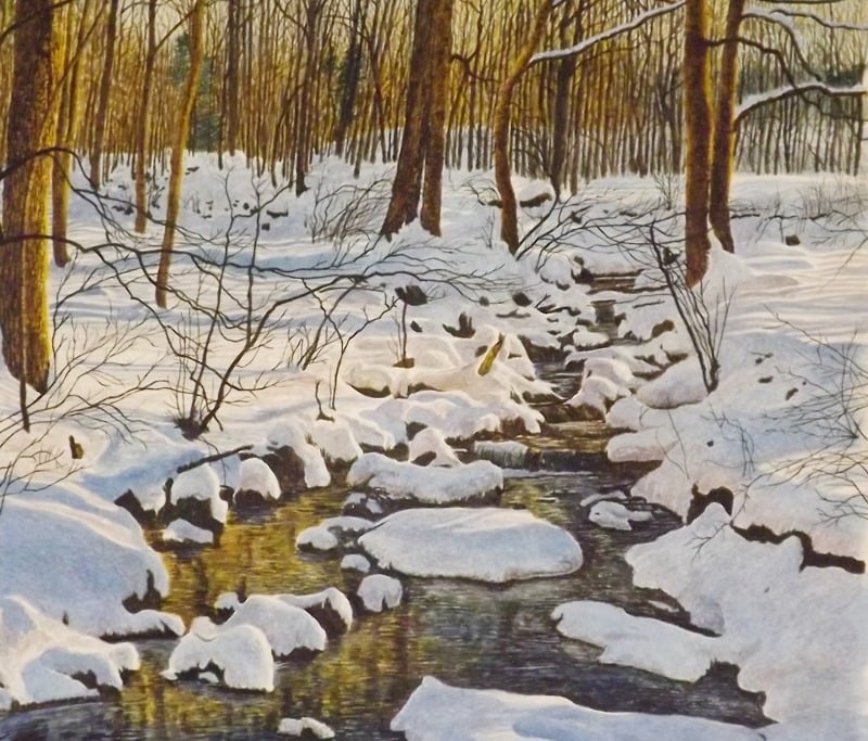 WOODLAND BROOK IN SNOW 22 X 26